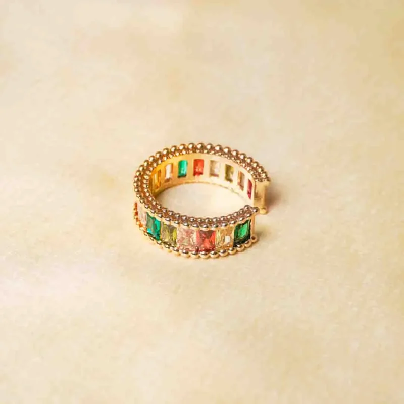 Golden Rectangular Multicolour Gem Ring