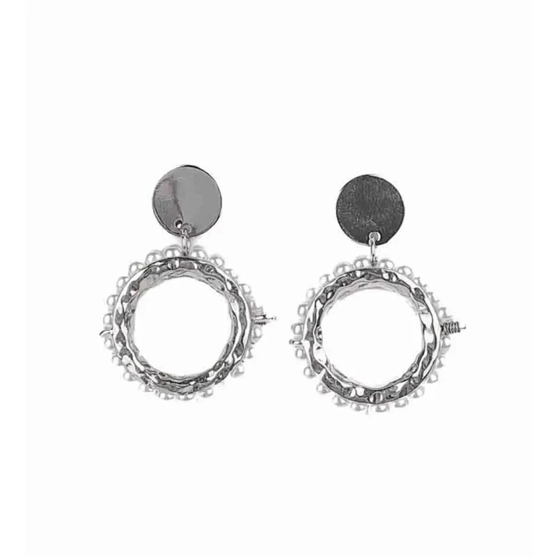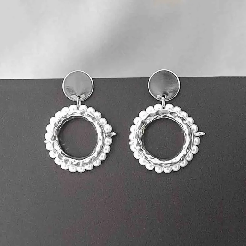Silver Disc Pearl Drop Earrings