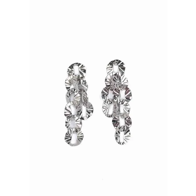 Statement Silver Textured Drop Earrings