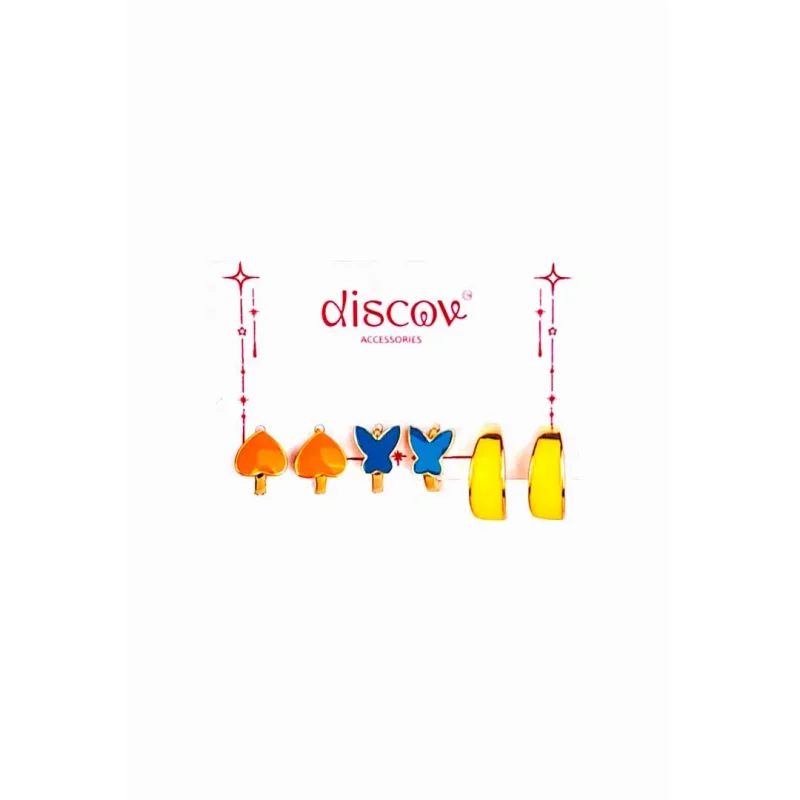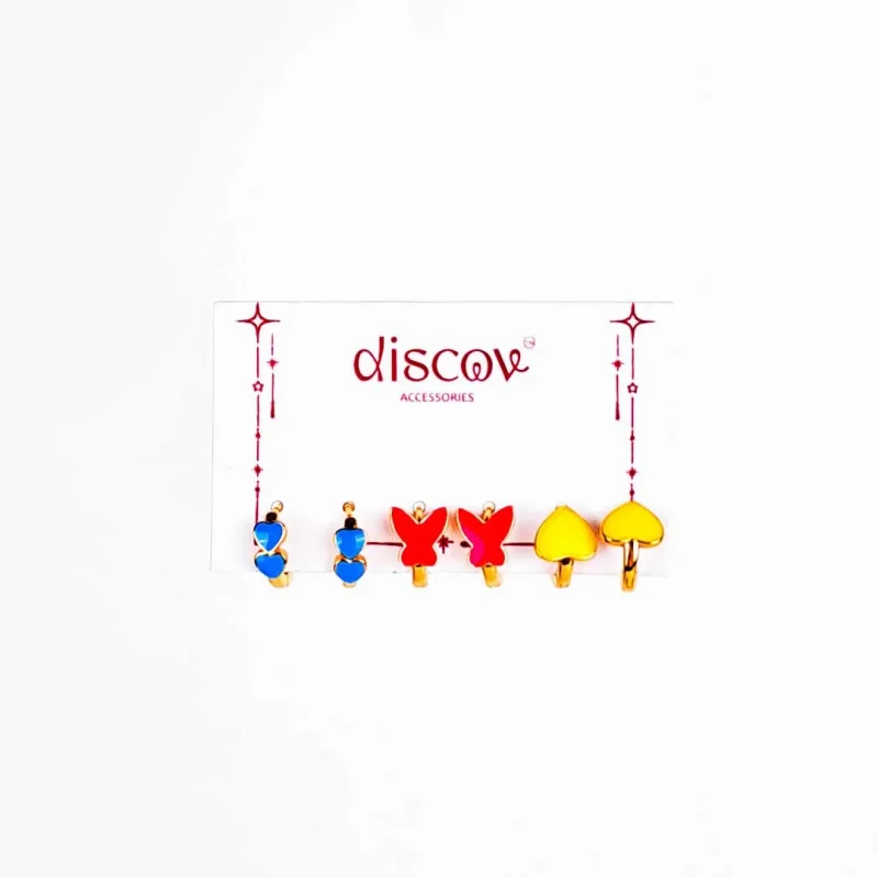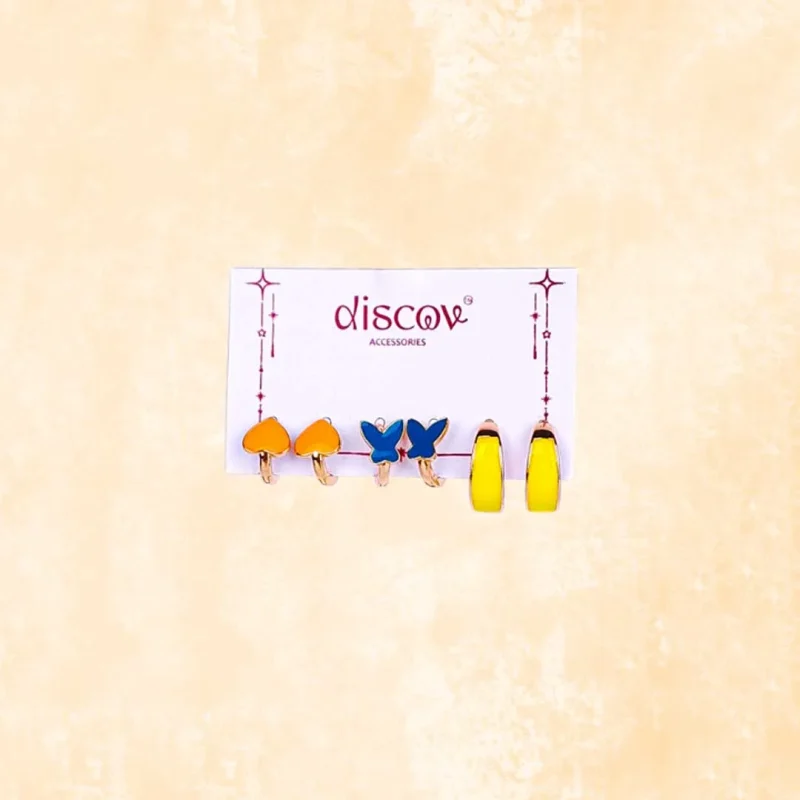 Set Of 3 Colorful Heart Butterfly Hoops Earrings Combo
