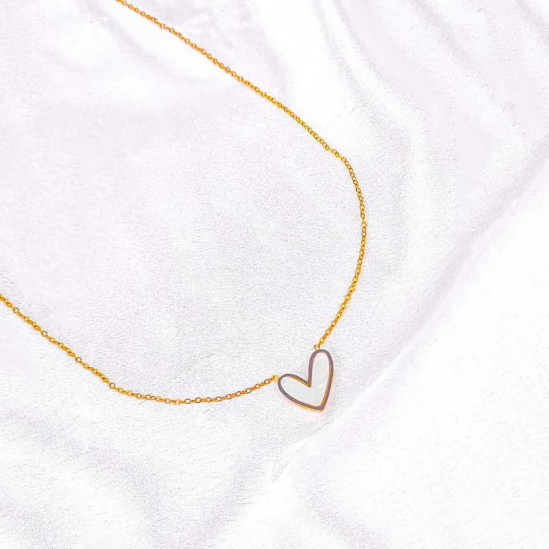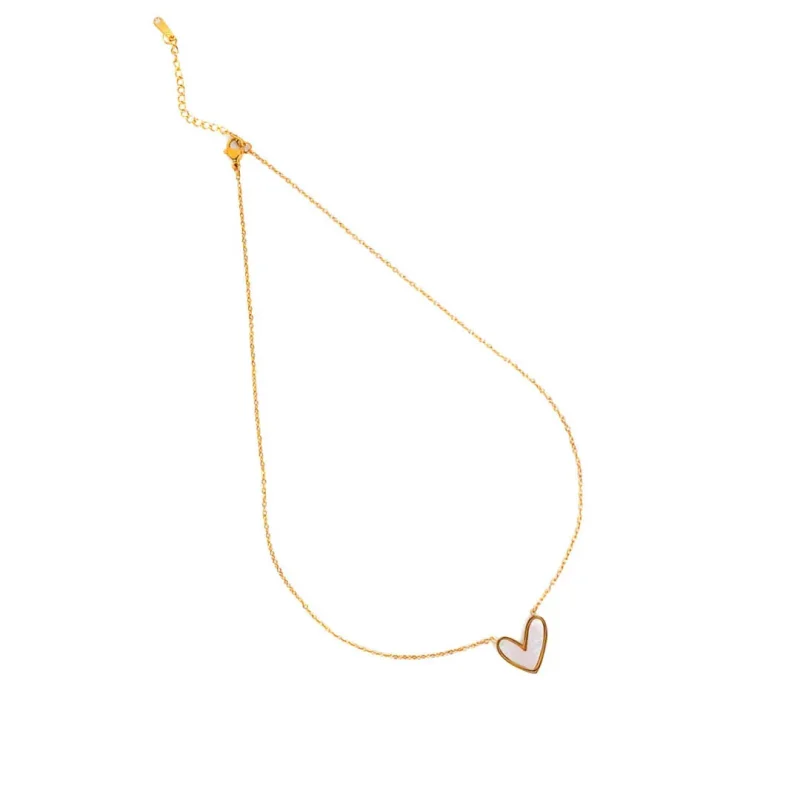 Golden White Heart Pendant Necklace