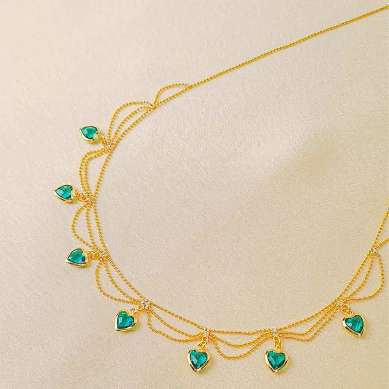 Emerald Hearts Layered Necklace
