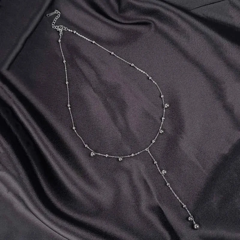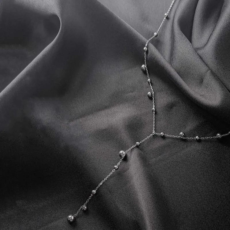 Silver Beaded Lariat Necklace