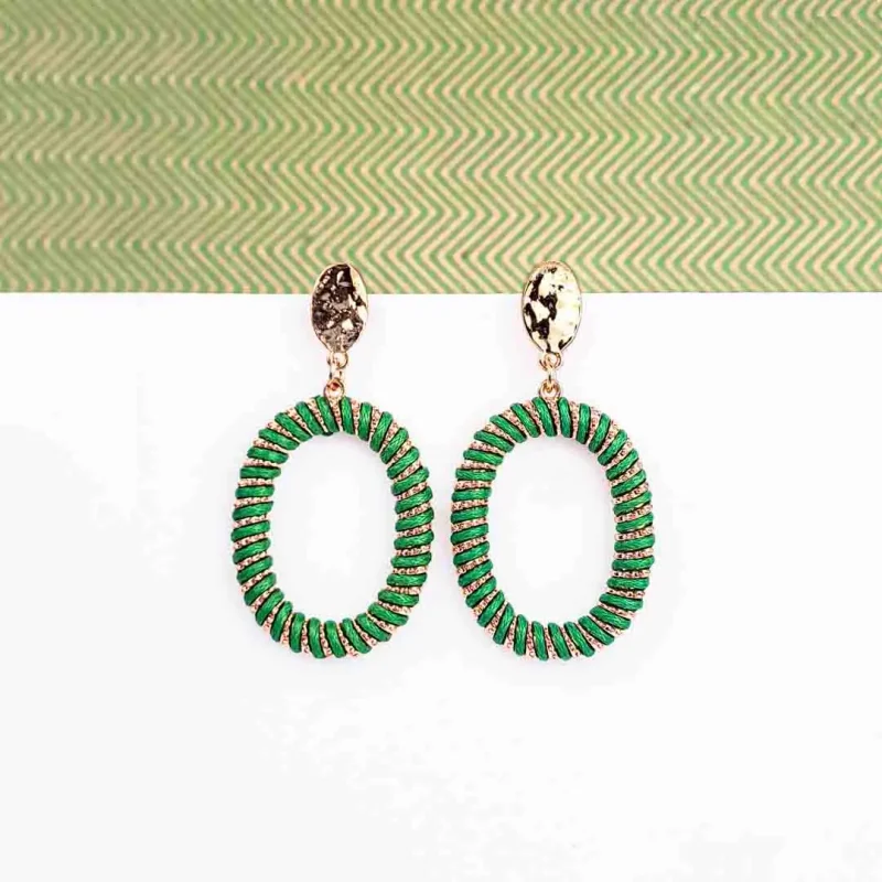 Eclectic Green Oval Drop Earrings