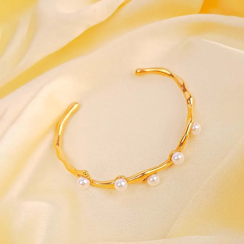 Elegant Golden Pearl Cuff Bracelet