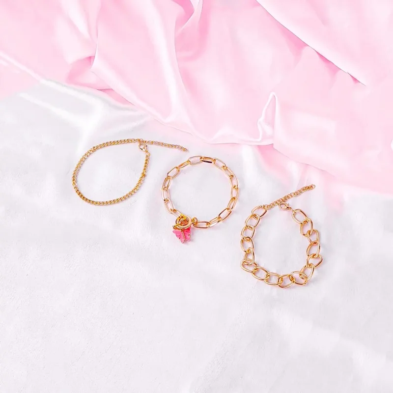 Pack Of 3 Butterfly Link Chain Bracelet Combo