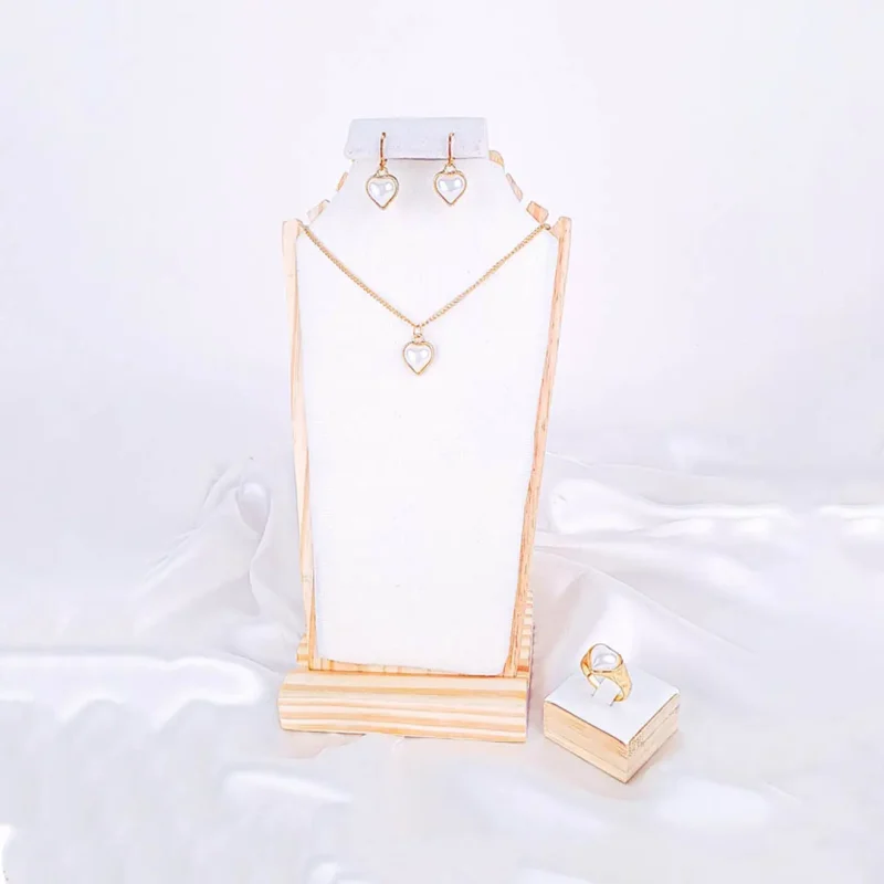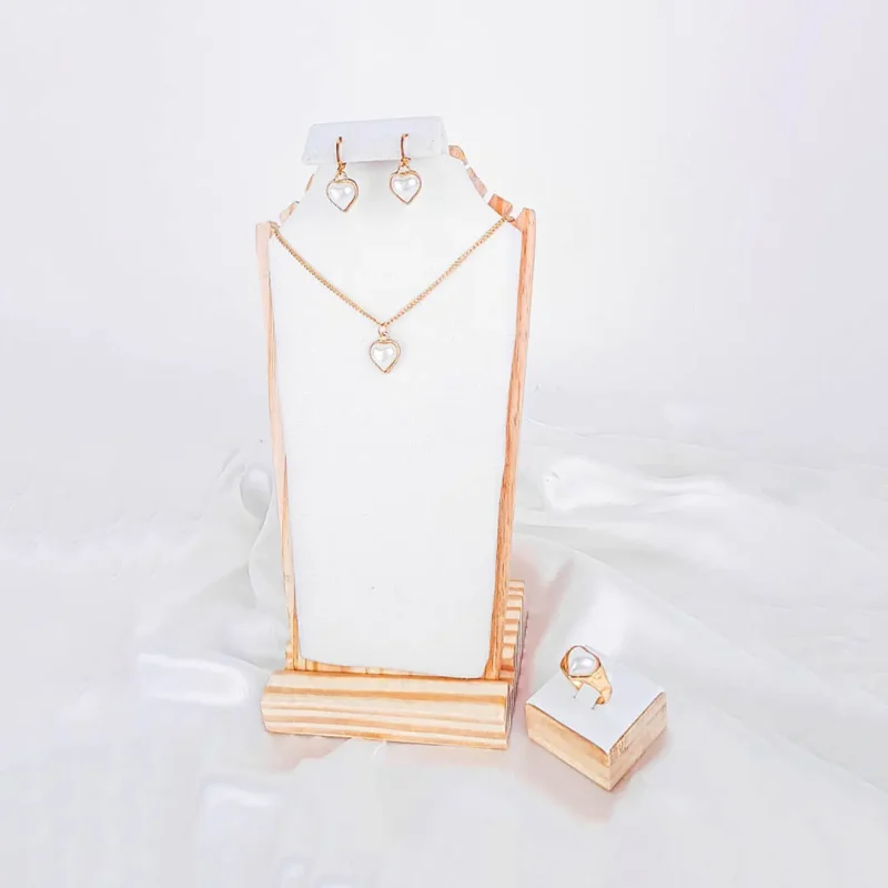 Gold Tone Pearl Heart Jewellery Set