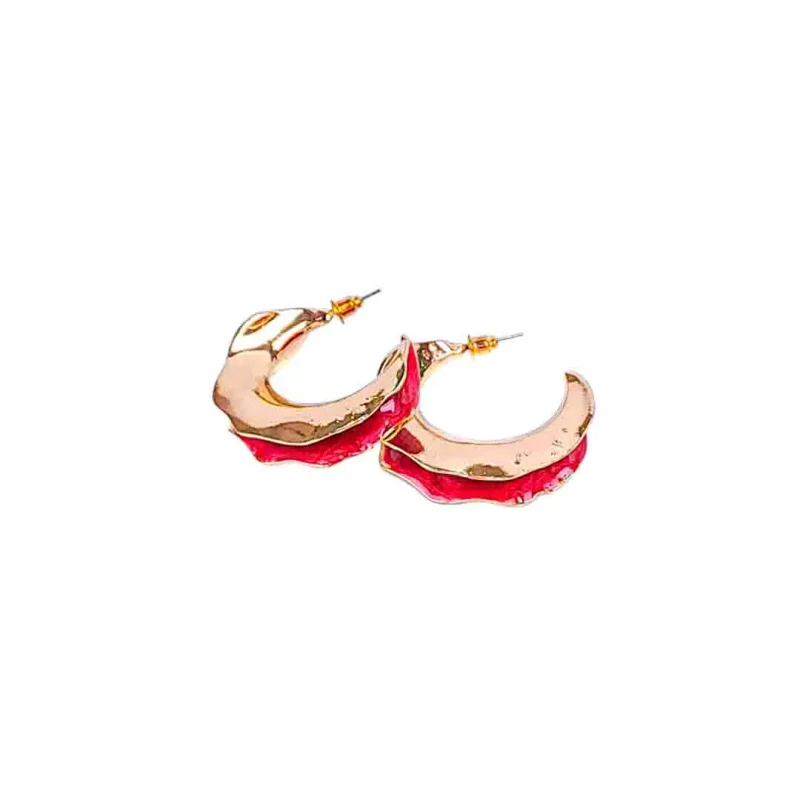 Golden Red Wavy Hoops