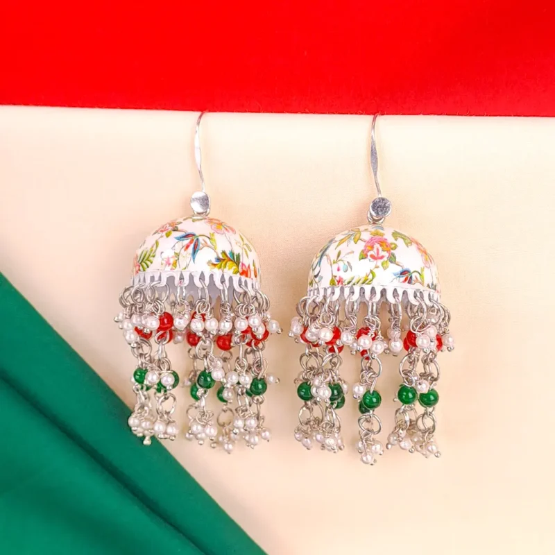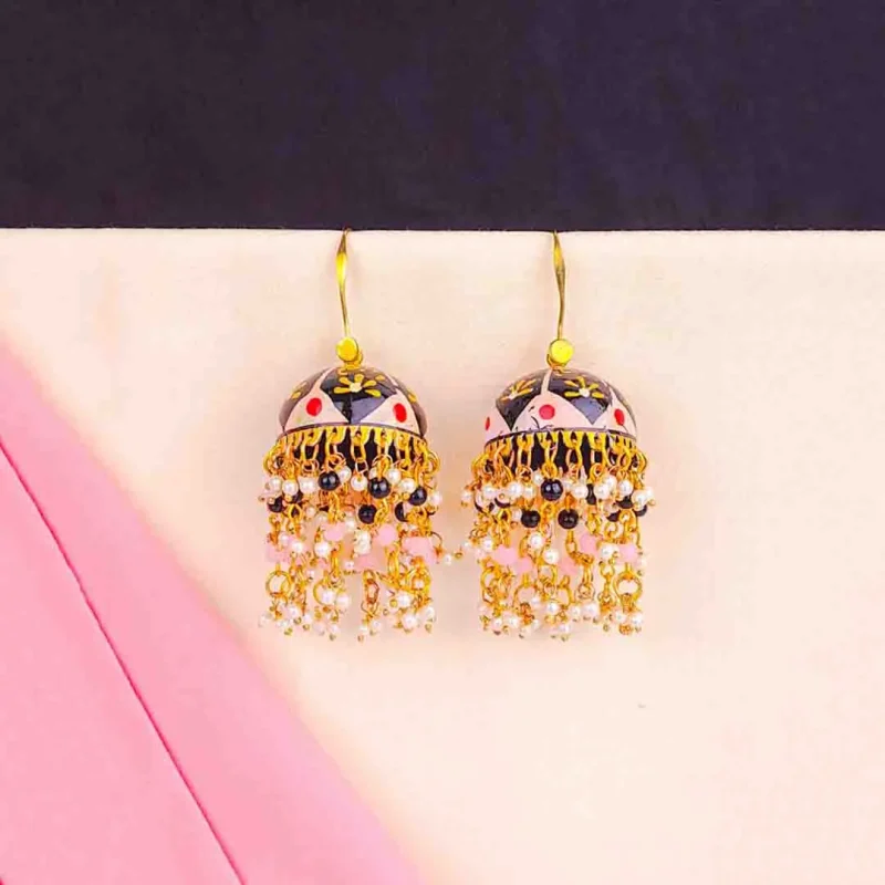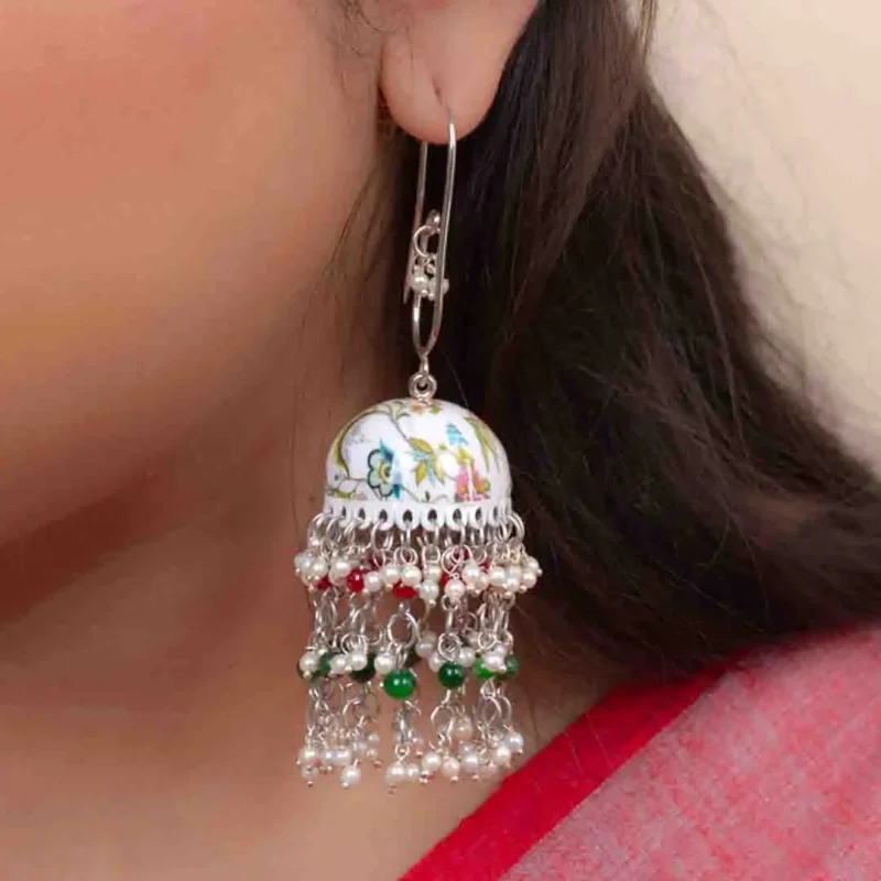Floral Meenakari Beaded Pearl Jhumka