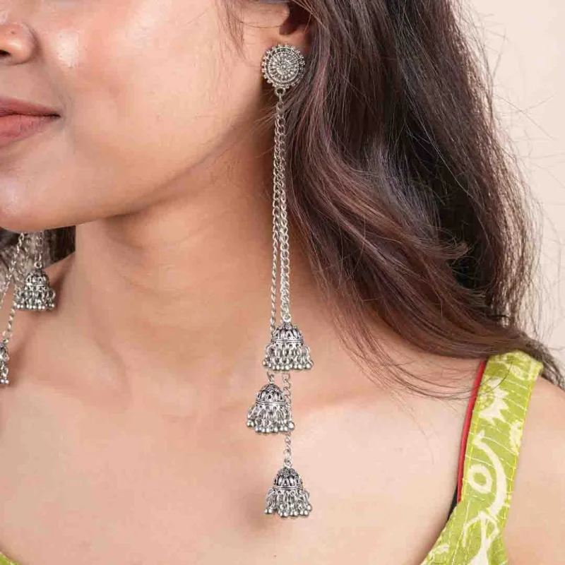 Oxidised Long Jhumka Dangle Earrings