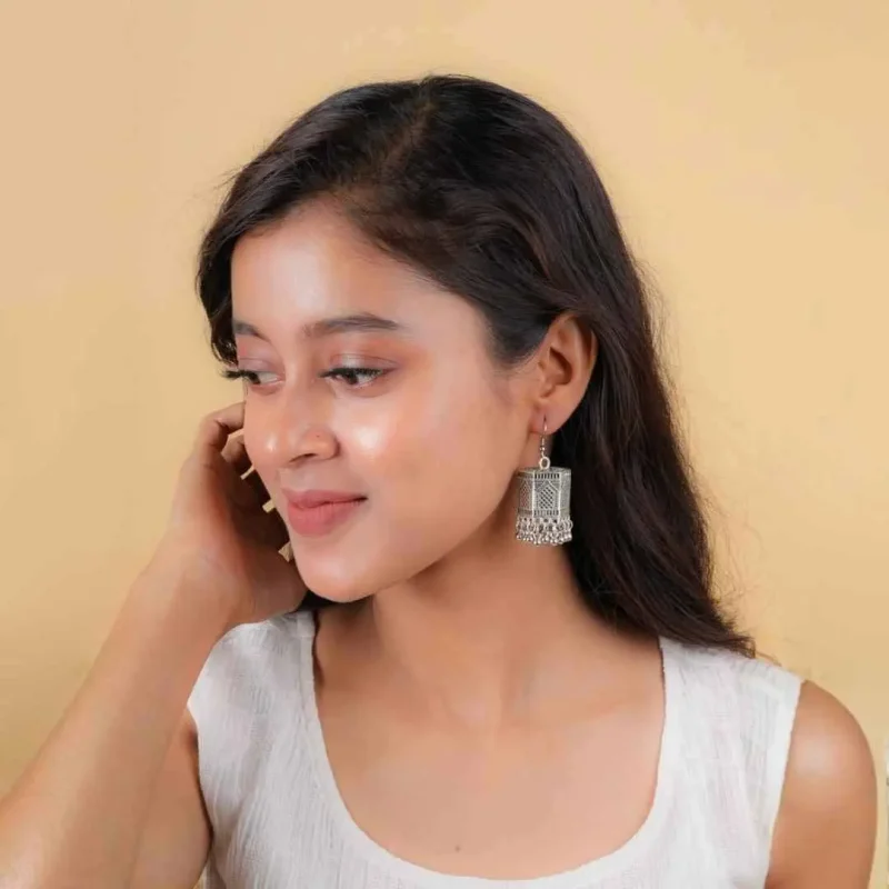 Silver Hexagonal Jharokha Jhumka