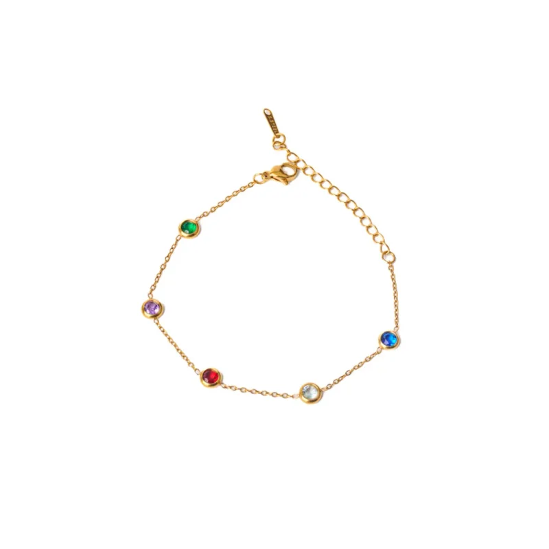 Elegant Round Multi Colour Gems Chain Bracelet