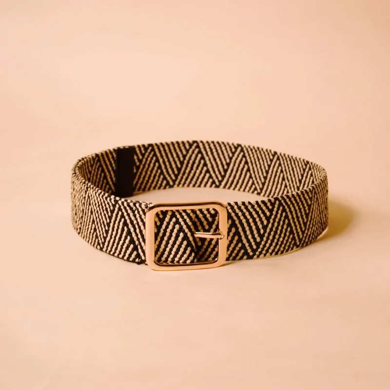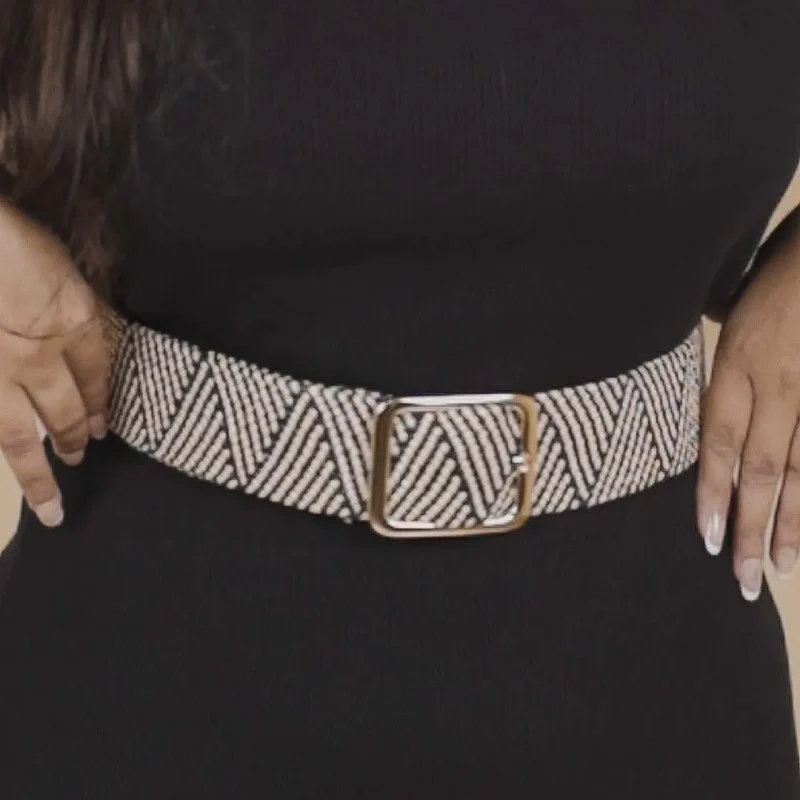 Raffia Black n Cream Chevron Belt