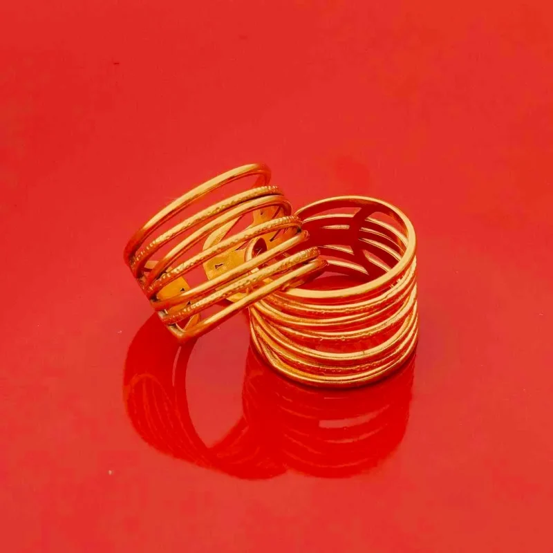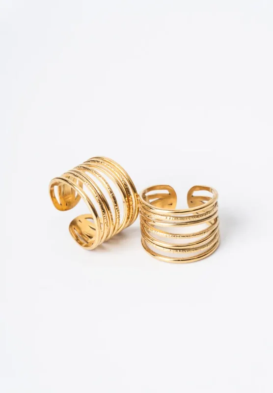 Pack of 2 Golden Textured Seven Layered Rings