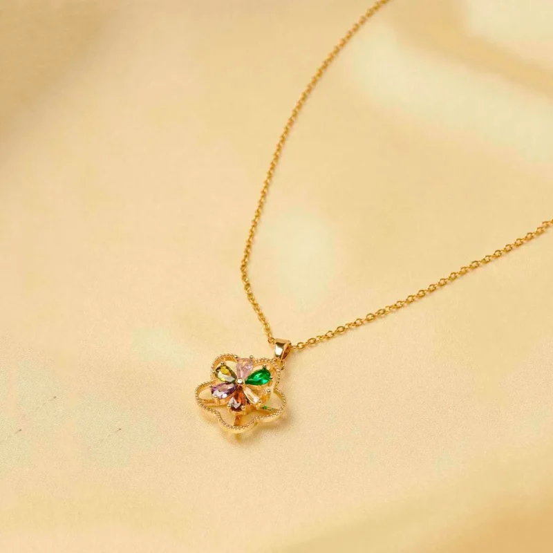 Golden Floral Colourful Gems Spinning Necklace
