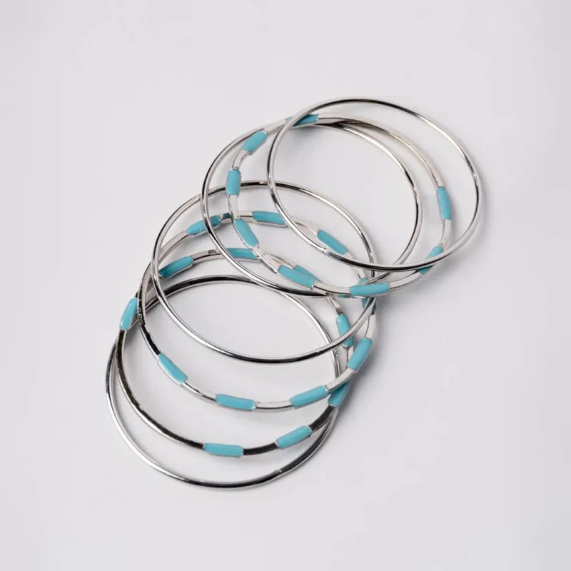 Silver Blue Enamel Bangles