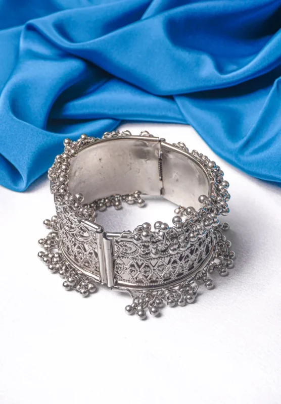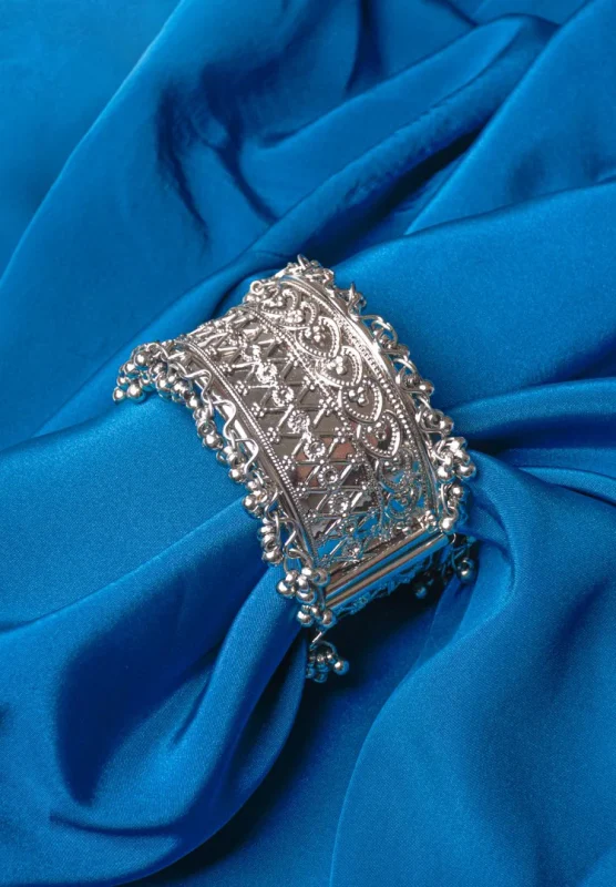 Ethenic Silver Ghungroo Cuff Bangle