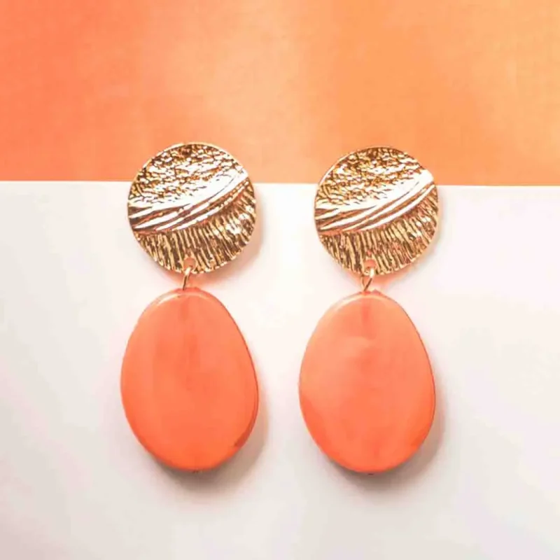 Textured Golden Resin Drop Earrings