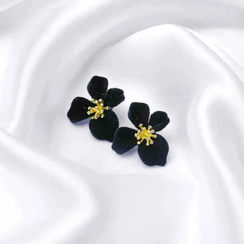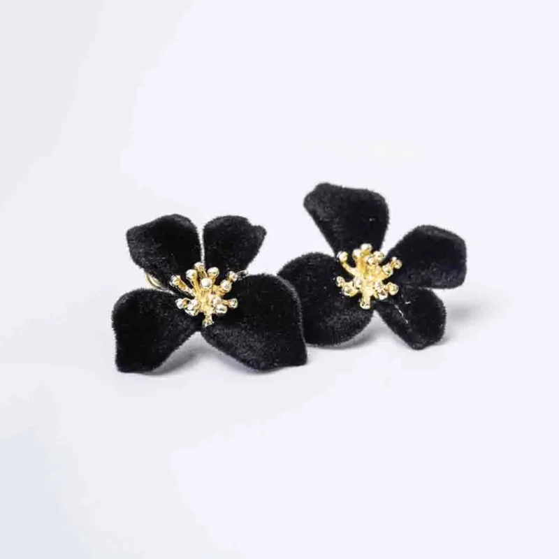 Floral Matte Black and Velvet Studs