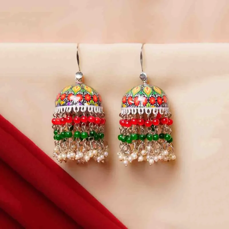 Floral Meenakari Beaded Jhumka