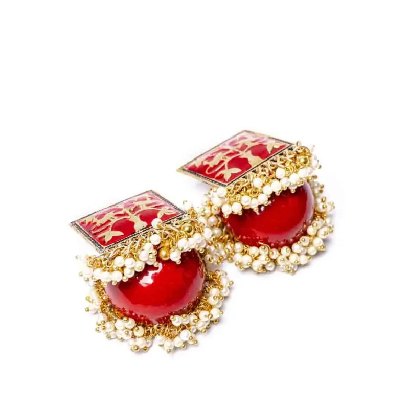 Meenakari square Mogra Pearls Dome Shaped Jhumka