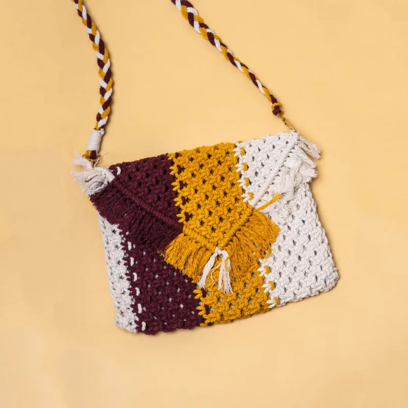 Macrame Brown n Yellow Sling Bag