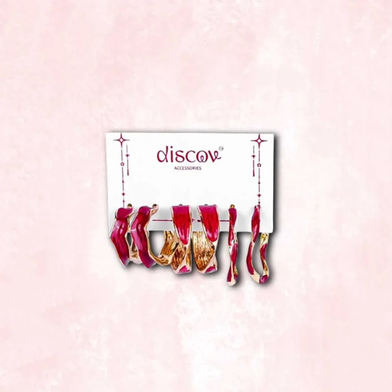 Set Of 3 Golden Red Hoops Earring Combo