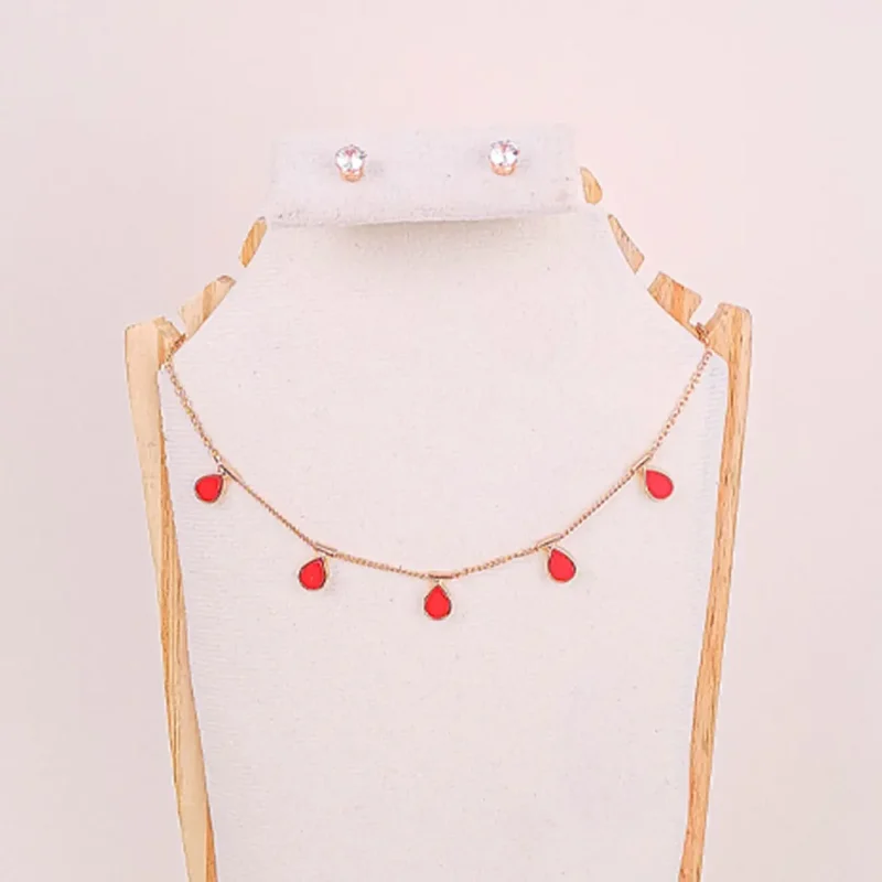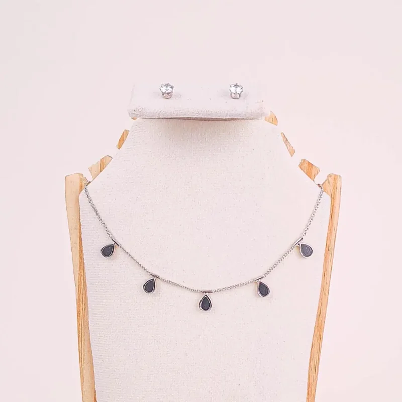 Teardrop Chain Necklace and Crystal Stud Earrings Set