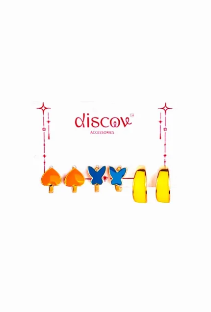 Set Of 3 Colorful Heart Butterfly Hoops Earrings Combo