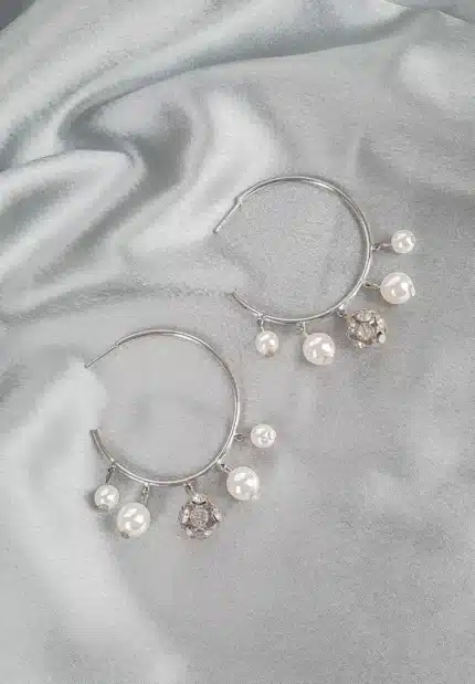Turquoise and Peach Circular Beaded Hoop Earrings