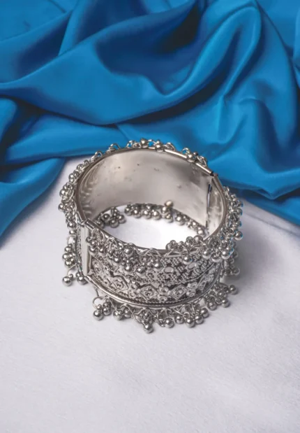 Original price was: ₹699.00.₹499.00Current price is: ₹499.00. Incl. all taxesIntricate Silver Ghungroo Cuff Bangle