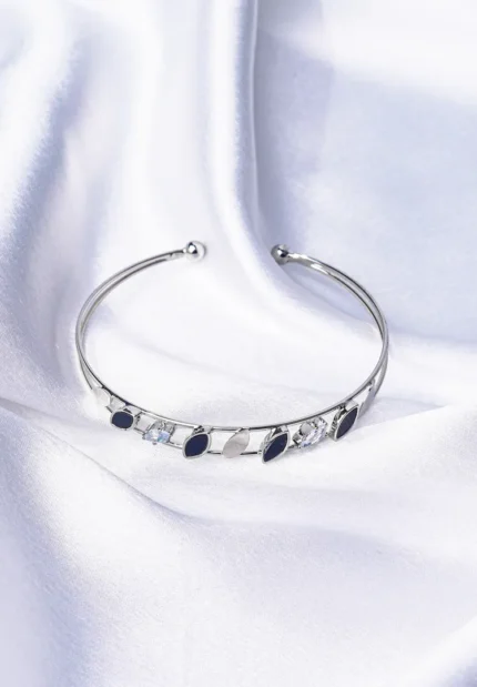Original price was: ₹949.00.₹649.00Current price is: ₹649.00. Incl. all taxesSilver Black n Crystal Open Cuff Bracelet