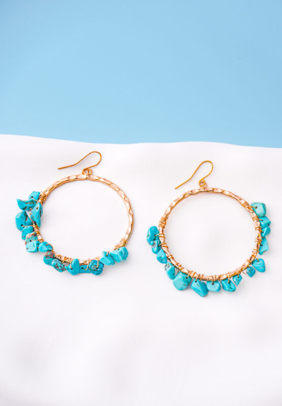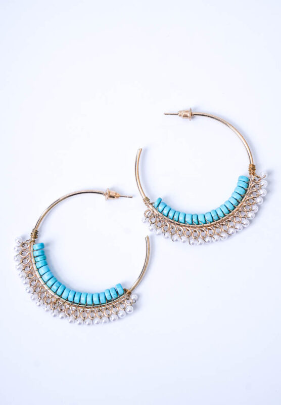 Beaded Turquiose Stone Textured Hoop Earings
