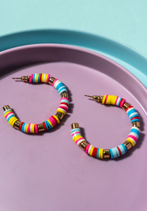 Beaded Multicolour Disc Hoop Earrings