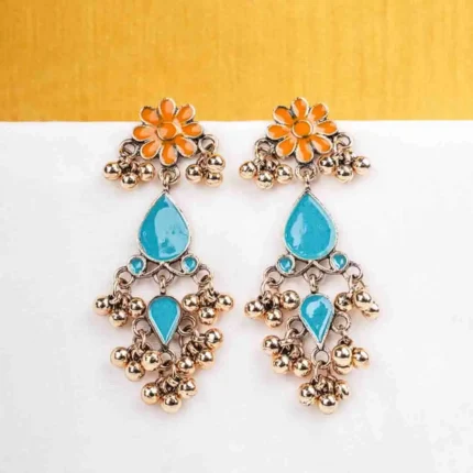 Antique Gold Bright Enamel Inlay Drop Earrings