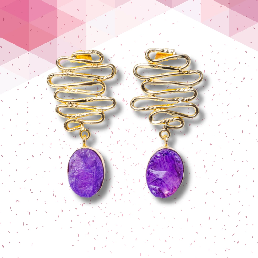 Asymetrical Resin Stoned Drop Earrings
