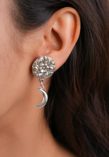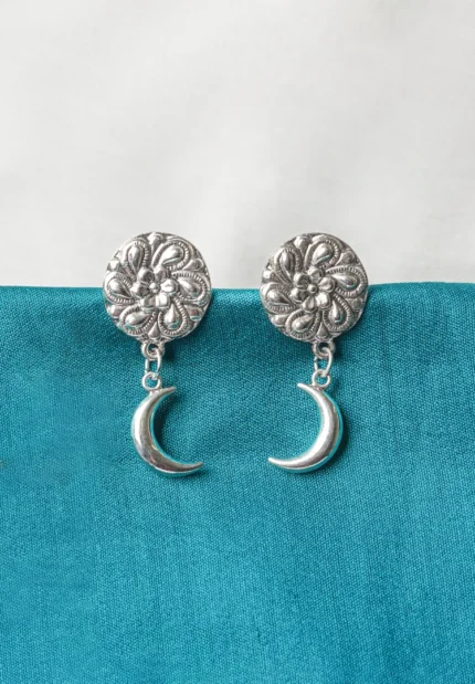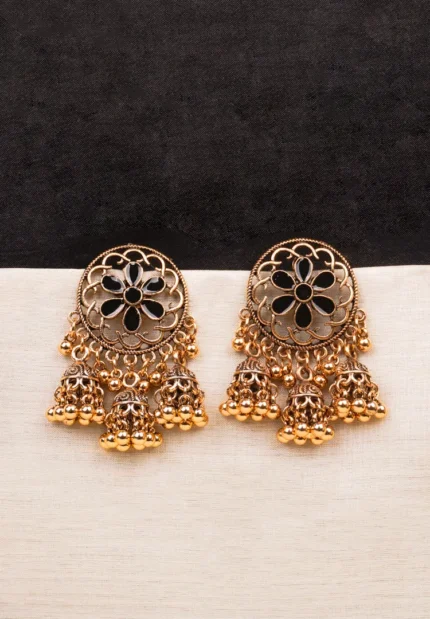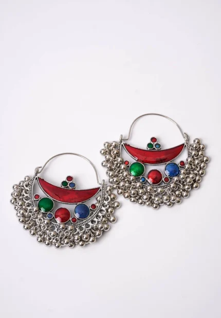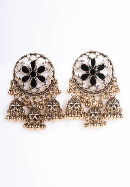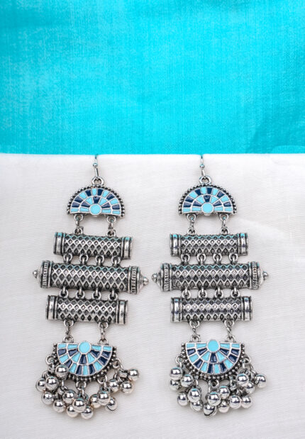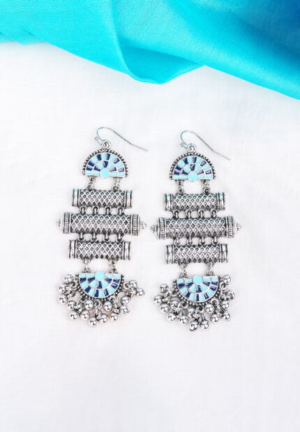 Geometric Enamel Inlay Oxidised Dangle Earrings