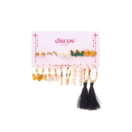 Pack Of 10 Golden Pearl Studs And Hoop Earrings Combo