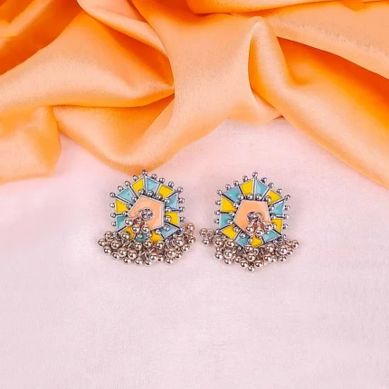 Bright Floral Meenakari Bell Jhumka