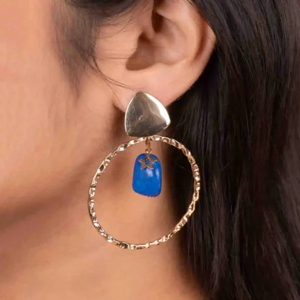 Blue Stone Hammered Halo Drop Earrings