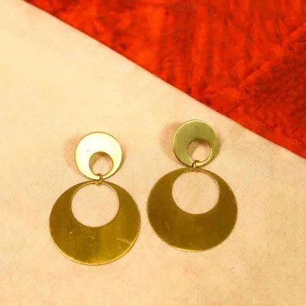 Brass Round Circular Drop Earrings