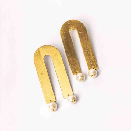 Brass U Shaped Pearl Drop Earrings
