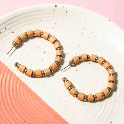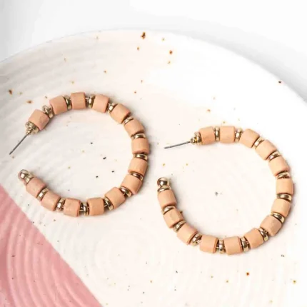 Circular Beaded Golden Disc Peach Hoop Earrings