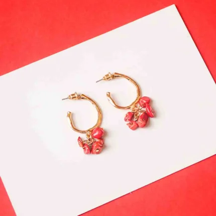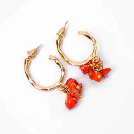 Circular Red Beaded Open Hoop Earrings