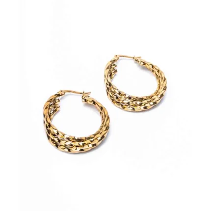 Golden Tripple Layered Wavy Hoops