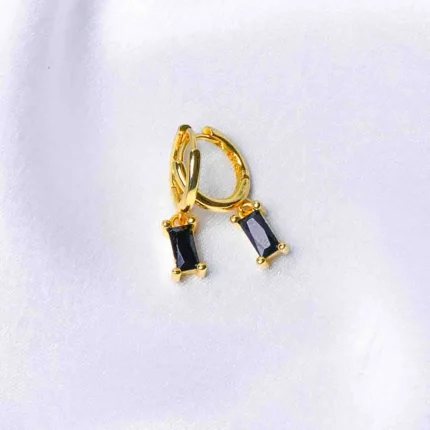 Golden Rectangular Crystal Gems Small Round Hoops
