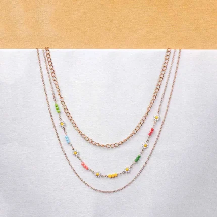 Floral Beaded Layered Chain Necklace