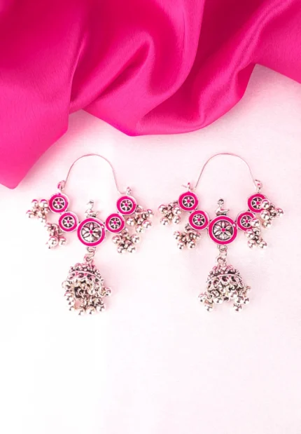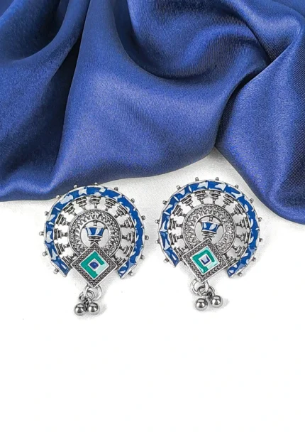 Geometric Enamel Inlay Oxidised Dangle Earrings
