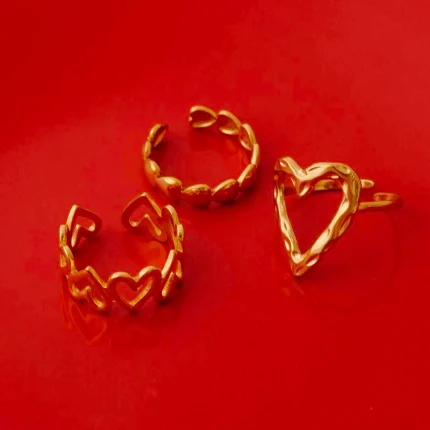 Pack of 3 Golden Textured Bold Rings