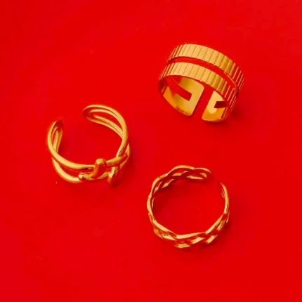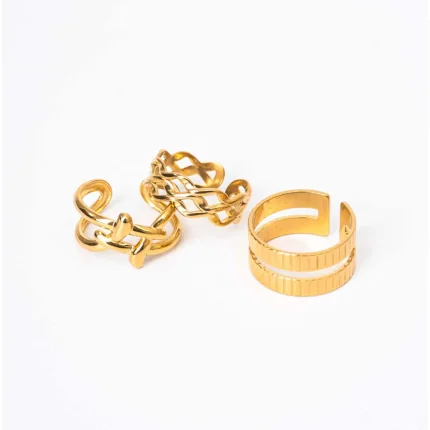 Pack of 3 Golden Inter Woven And Corrugated Design Rings